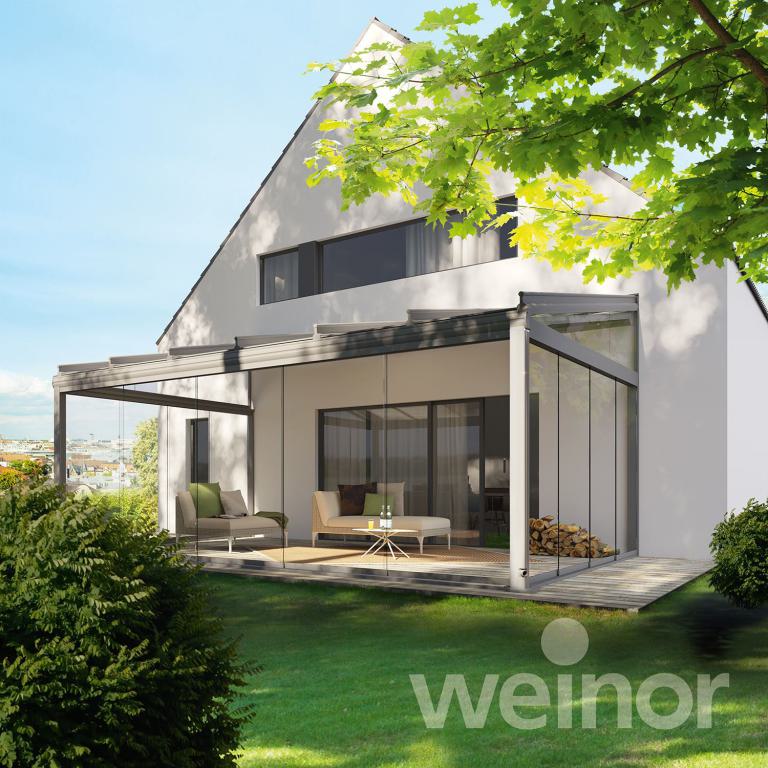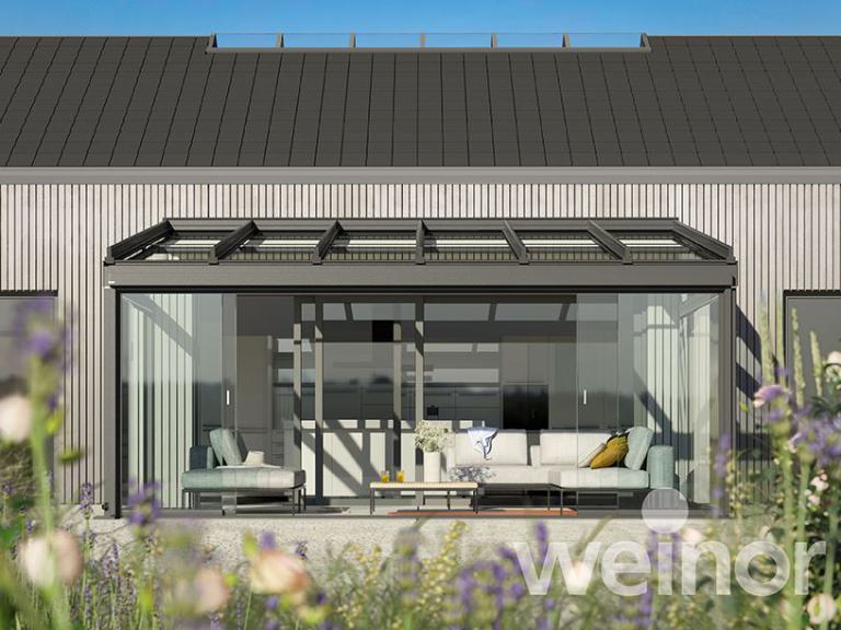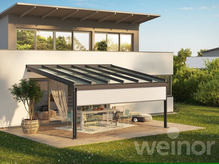 Auch der Komfortgedanke kommt nicht zu kurz. Das Terrassendach lässt sich mit LED-Beleuchtung ergänzen. Sogar Farbeffekte, die die Terrasse am Abend in angenehmes Licht tauchen, sind möglich. Um das schöne Ambiente im Freien noch länger genießen zu können, bieten Marken wie Weinor auch Heizsystem an. Alles ist bequem per Handsender steuerbar, wie auch die wichtigen ergänzbaren Sonnenschutzprodukte: Wintergarten- und Senkrechtmarkisen sorgen zum Beispiel dafür, dass sich der Bereich unter dem Glasdach nicht aufheizt. Senkrechtmarkisen bieten zudem Sicht, Wind- und Blendschutz.